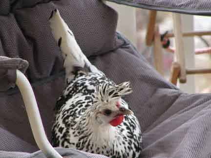 There are conventional nest boxes in the chicken house but they seem to like variety. Here are some the current favorites. (Click on the thumbnails to see her in action.)