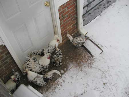 This may be a hardy breed from the Swiss Alps but that doesn't mean they have to like snow. This was just too much for them and they have been hanging around the house trying to stay dry. Tonight they decided to sleep over on the porch.